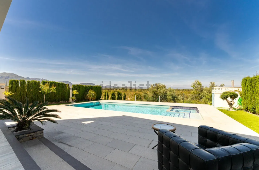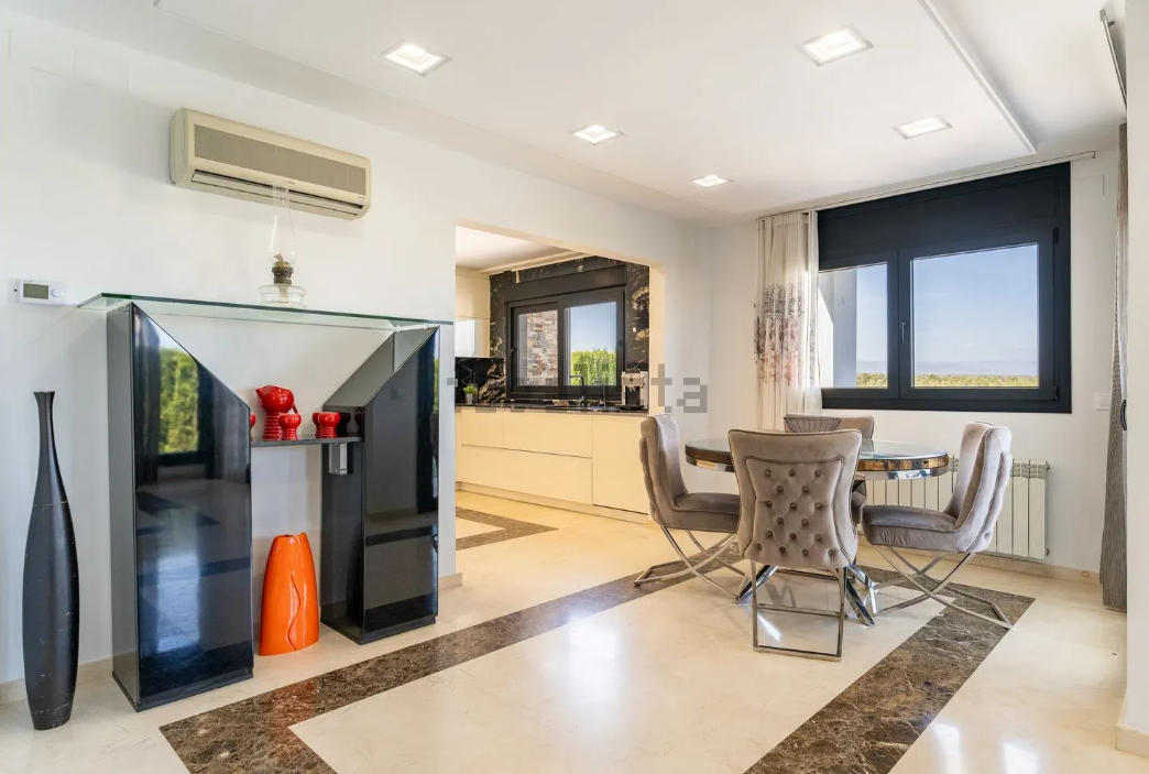 Al entrar, serás recibido por un amplio salón-comedor con acceso directo a una terraza que te llevará a una magnífica piscina con jacuzzi, rodeada de un jardín impecablemente cuidado. La cocina moderna y espaciosa, con acceso directo al garaje, está equipada para satisfacer todas tus necesidades culinarias.